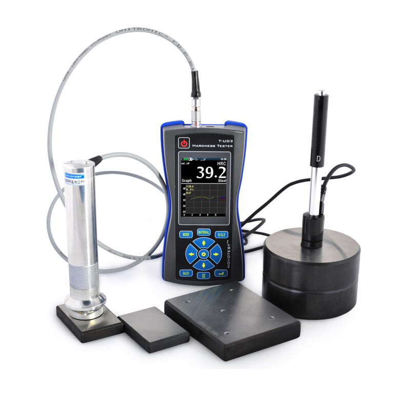 Portabel och behändig universell hårdhetsmätare för metaller. Instrument T-UD3 är kompatibelt med båda de portabla hårdhetsmetoderna Leeb och UCI, vilket innebär att ett brett område täcks in för hårdhetsmätning på många olika objekt. Mätaren har färgskärm där resultatet kan visas i statistiskt alternativt grafiskt läge.