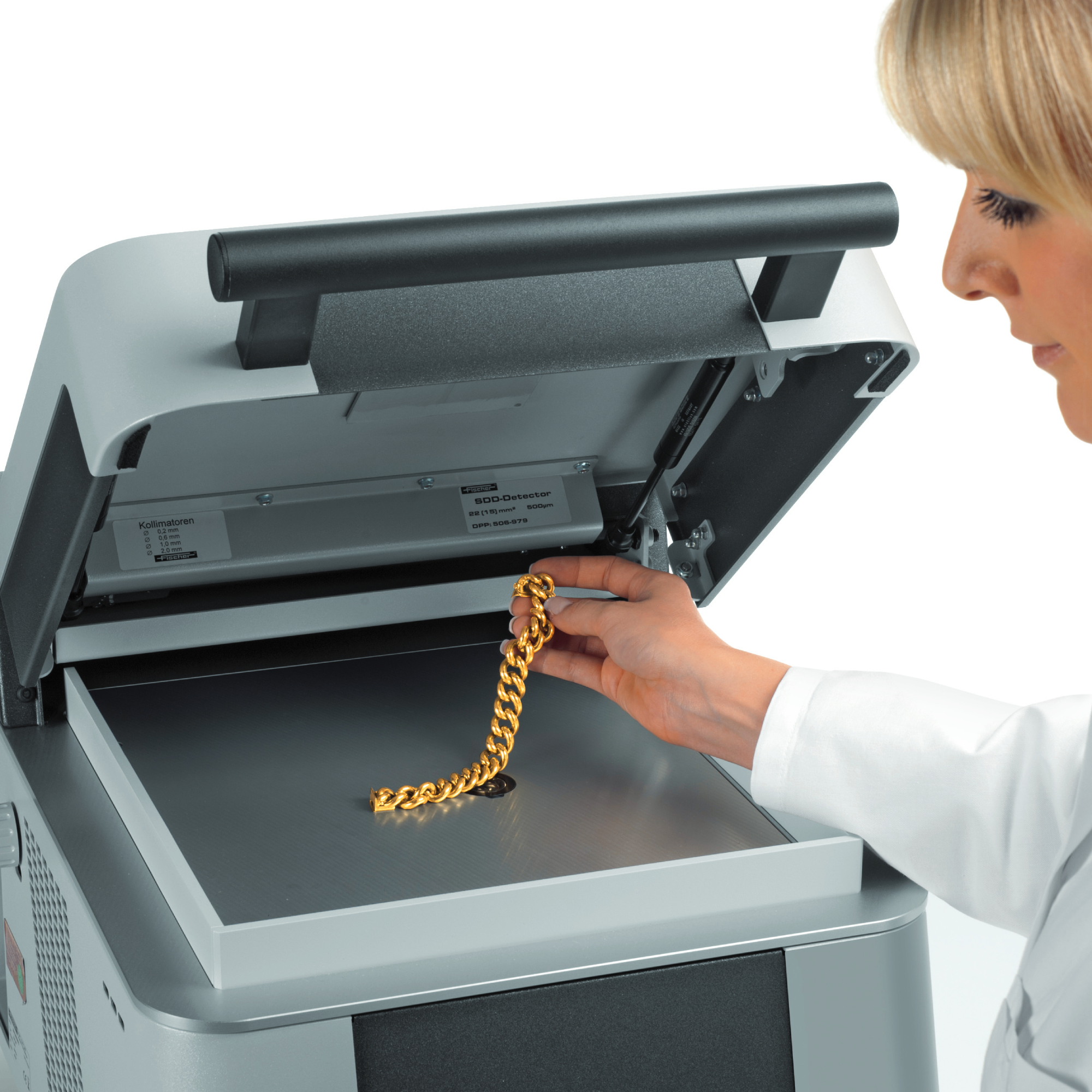 GOLDSCOPE SD är en marknadsledande modellserie från Fischer i Tyskland. Med dessa kompakta och noggranna röntgenutrustningar analyseras smycken, mynt och ädelmetaller enkelt och snabbt. Lämpliga för både pantbanker, guldhandlare, testlaboratorier och smyckestillverkare.