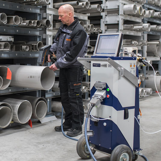 PMI-MASTER Pro2 är en pålitlig robust mobil metallanalysator med OES (optisk emissions-spektrologi) för analyser och sortering av legeringar. Med argongas analyseras ämnen som kol, svavel och fosfor i låga nivåer. Denna gnistspekrometer har en integrerad Windows PC med vinklingsbar pekskärm där den användarvänliga mjukvaran SparcFire ingår.