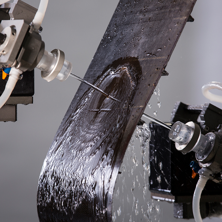 • Squirtersystem där ultraljudet leds genom vattenstrålar mot objektets yta. En vanlig provningsmetod på större kompositdetaljer inom bland annat flygindustrin.