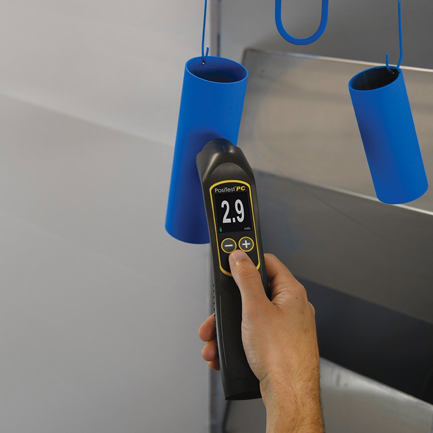 Kontroll av skikttjocklek vid pulverlackering innan härdning. Positest PC (PowderChecker) använder sig av den välbeprövade luftburna ultraljudstekniken som är en helt beröringsfri metod. Instrumentet är ergonomiskt vinklat vilket underlättar ett säkrare mätutförande. Positest PC har ett mätområde från 20 – 100 µm.