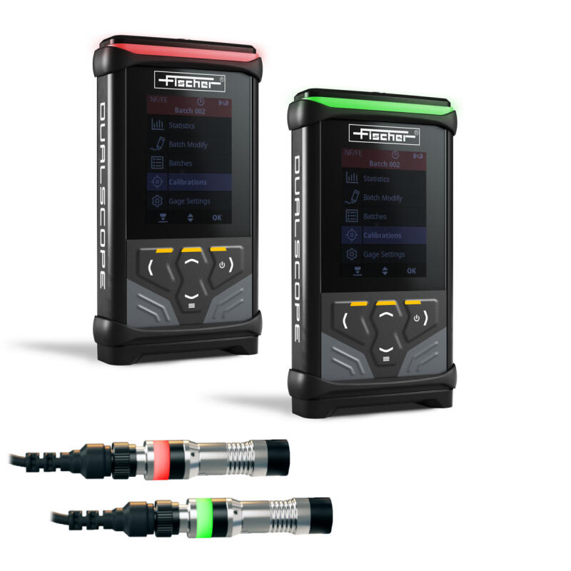 Toppmodell skikttjockleksmätare för sonder med både magnetisk induktiv och virvelströmsmetod.