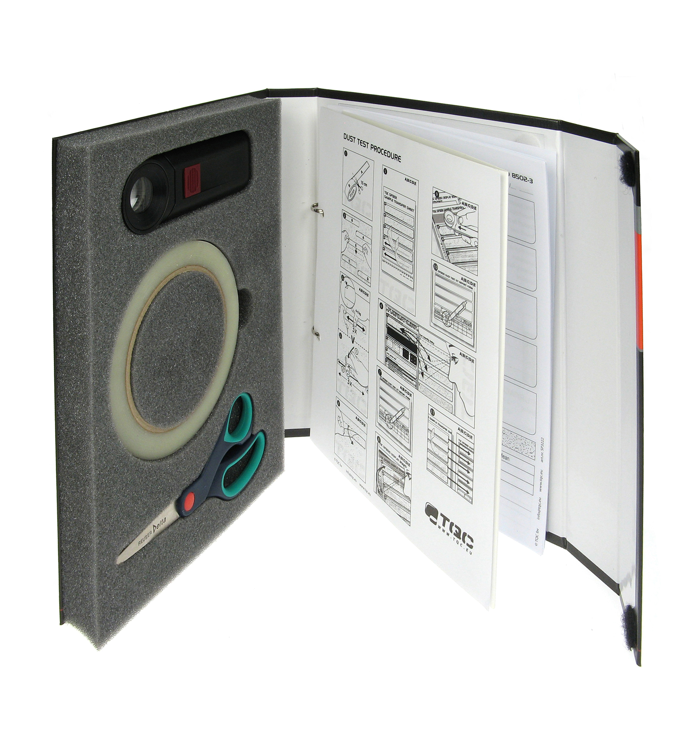 Dust Test Kit enligt ISO 8502-3 tillåter bedömning av mängd och storlek på dammpartiklar på ytor förberedda för målning. Damm på blästrade ytor kan minska vidhäftning, vilket leder till sämre kvalité och undermålig beläggning.
