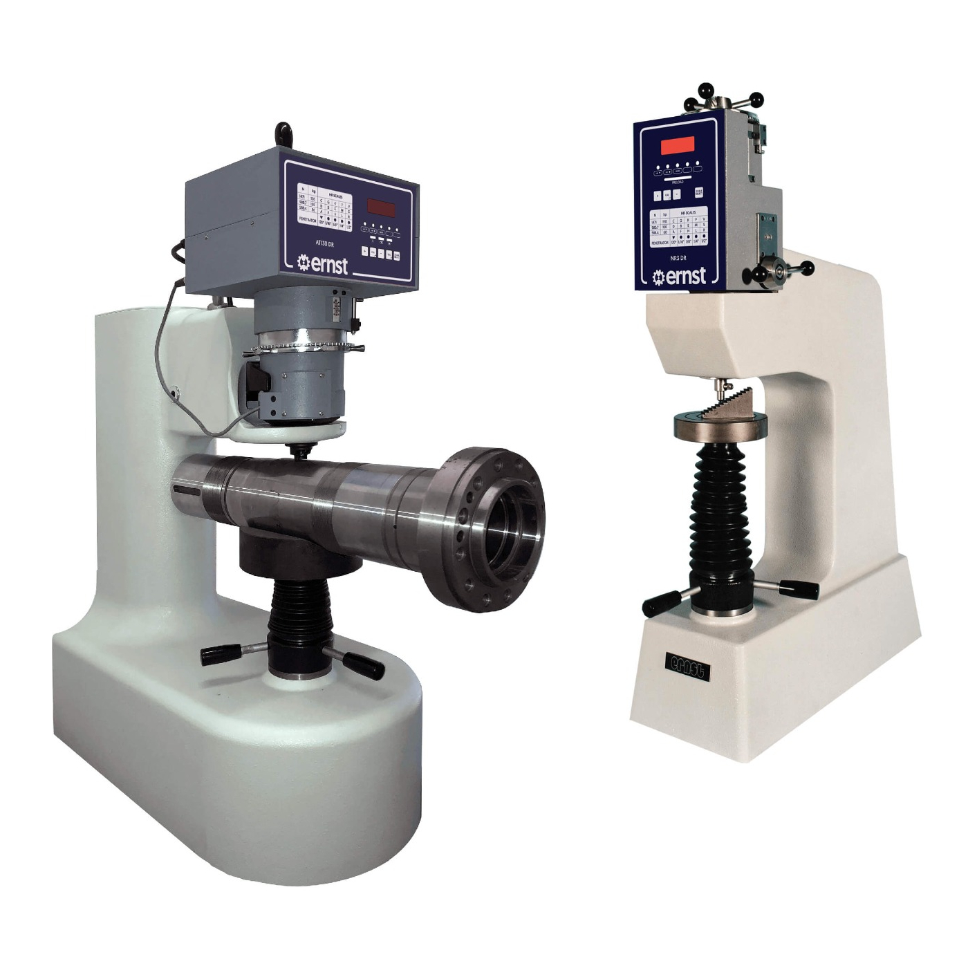Klassiska stationära hårdhetsmätare från ERNST enligt Rockwell-standarden. Båda modellerna har möjlighet för direktvisning av andra hårdhetsskalor som Brinell.
