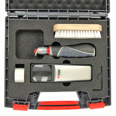 Enkel standardiserad metod för att kontrollera vidhäftningen mellan färg och substrat. Först ritsas 6 st parallella linjer, därefter ritsas 6 st linjer vinkelrätt mot de tidigare. En tejp appliceras över det erhållna rutnätet och rycks loss. Bedömning av vidhäftningen sker optiskt enligt en skala 0-5. Verktyget kan levereras med tre olika blad: 1 mm ( 0-60 µm ), 2 mm ( 61-120 µm ) eller 3 mm (121-250 µm).