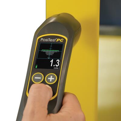 Kontroll av skikttjocklek vid pulverlackering innan härdning. Positest PC (PowderChecker) använder sig av den välbeprövade luftburna ultraljudstekniken som är en helt beröringsfri metod. Instrumentet är ergonomiskt vinklat vilket underlättar ett säkrare mätutförande. Positest PC har ett mätområde från 20 – 100 µm.