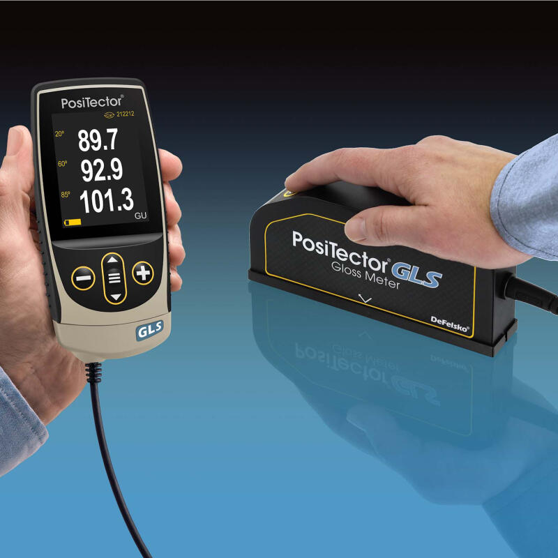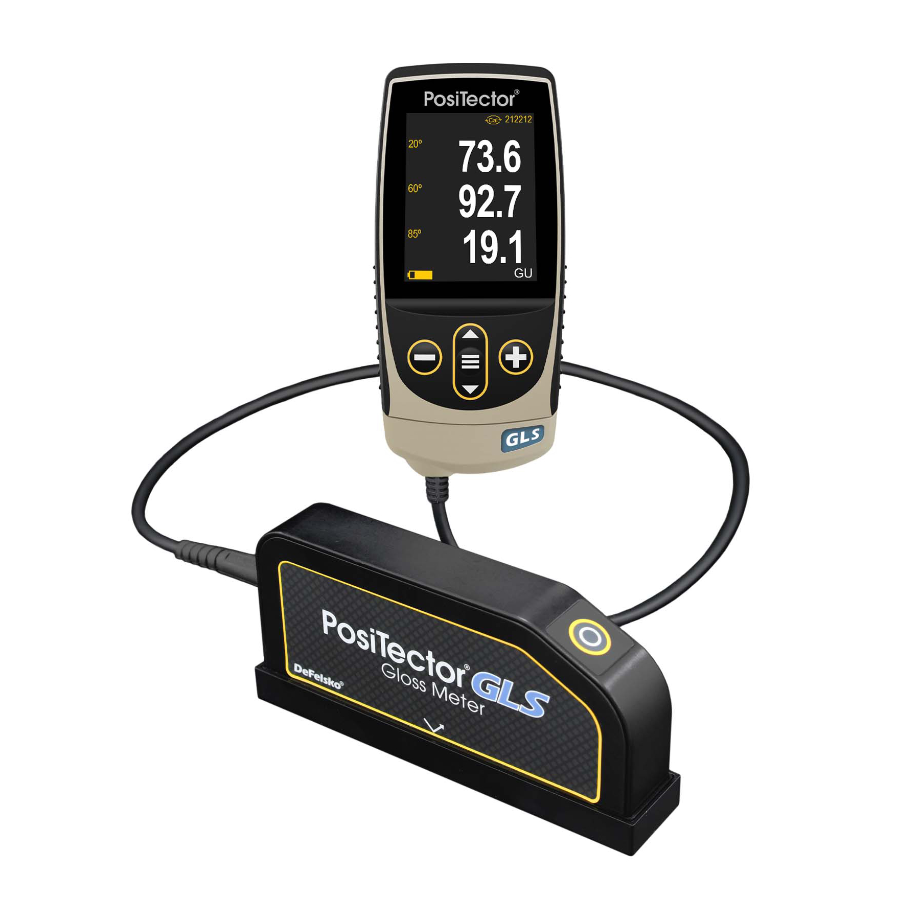 Instrument POSITECTOR med extern mätsond GLS för glansmätning. Den vanligaste infallsvinkeln 60° är för främst mätområde 10 - 70 GU. För högglansiga ytor (>70 GU) rekommenderas 20° och för mattare (<10 GU) 85°. Sonderna finns i 3 olika versioner:
